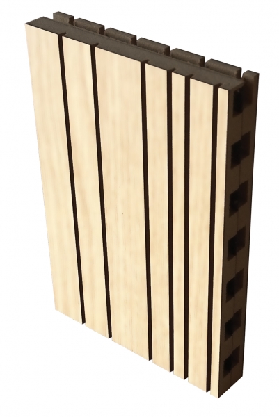 | Materiaalopbouw | MDF-kern zwart waterwerend 2 x 9 mm Edelfineer of afgewerkt fineer van Shinnoki® Akoestisch dempend glasvlies op de rugzijde |