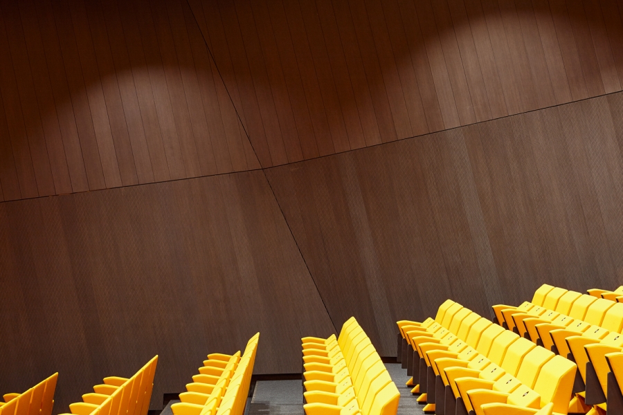 Akoestisch dempende panelen type G in een meeting center