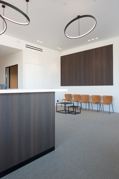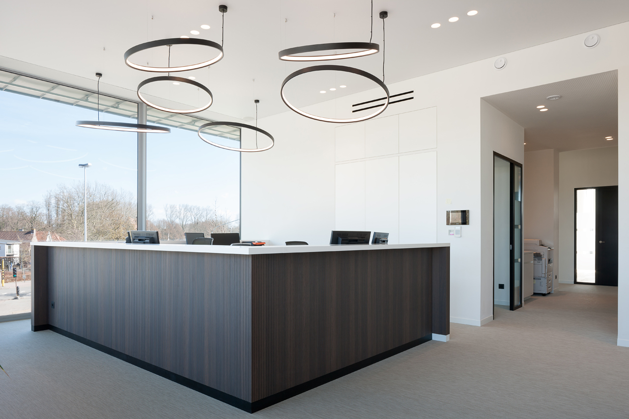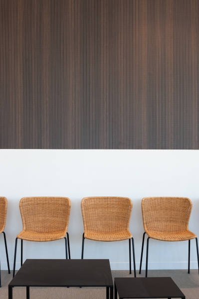 Akoestisch absorberende panelen type Db in de receptie en wachtruimte