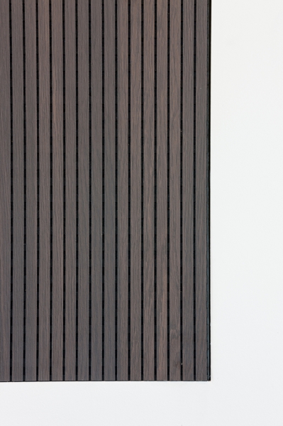 Akoestisch dempend paneel met 8,75 % perforatie: front verticale groeven in combinatie met dwarse do..